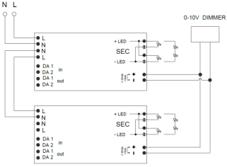 Connect the power supply to the DALI system, and it can be dimmed by the DALI host. The dimming range is 0-100%.